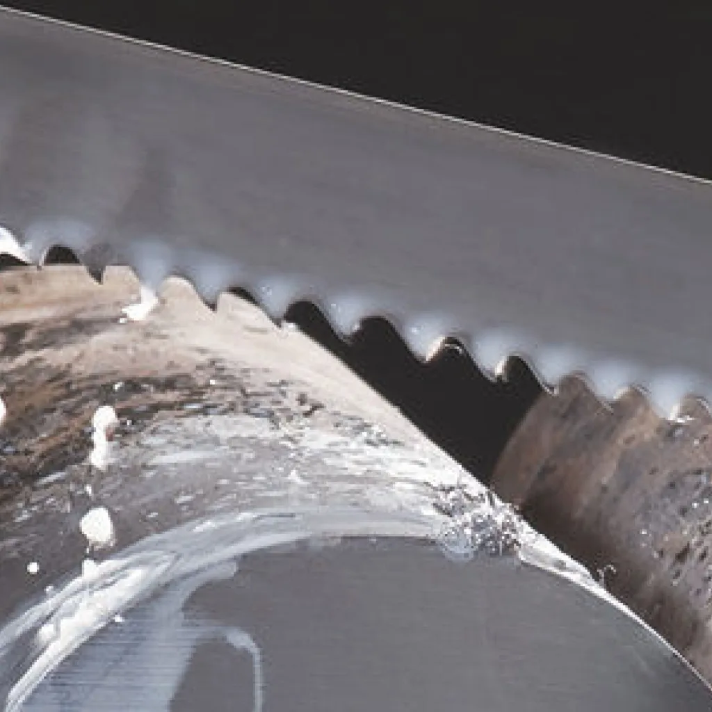 • Hoja afilada y apropiada: Asegúrate de que la hoja esté en buen estado de filo. Una hoja filosa bien lubricada cortará limpio y derecho; en cambio, una hoja que empieza a desafilarse genera fricción extra y calor excesivo, lo que empeora la calidad del corte. Selecciona el paso de diente correcto para el material: si usas una hoja de dientes demasiado finos (muchos TPI) sobre un material muy grueso, las virutas pueden atascarse en las ranuras entre dientes en lugar de expulsarse, causando fricción que lima el material en vez de cortarlo. Esto se traducirá en superficies ásperas y sobrecalentamiento. Por el contrario, para la mayoría de aplicaciones metálicas, un paso de diente más grueso suele ser más eficiente y rápido. Observa las virutas producidas durante el corte: lo ideal es obtener virutas continuas, rizadas y de color metálico natural. Virutas de color azul oscuro son señal de exceso de calor, indicando que la velocidad o avance podrían ser inapropiados o que la hoja está perdiendo filo. Si notas virutas azuladas o quemadas, reduce la velocidad de corte o presión de avance, verifica la lubricación, e inspecciona la condición de la hoja.