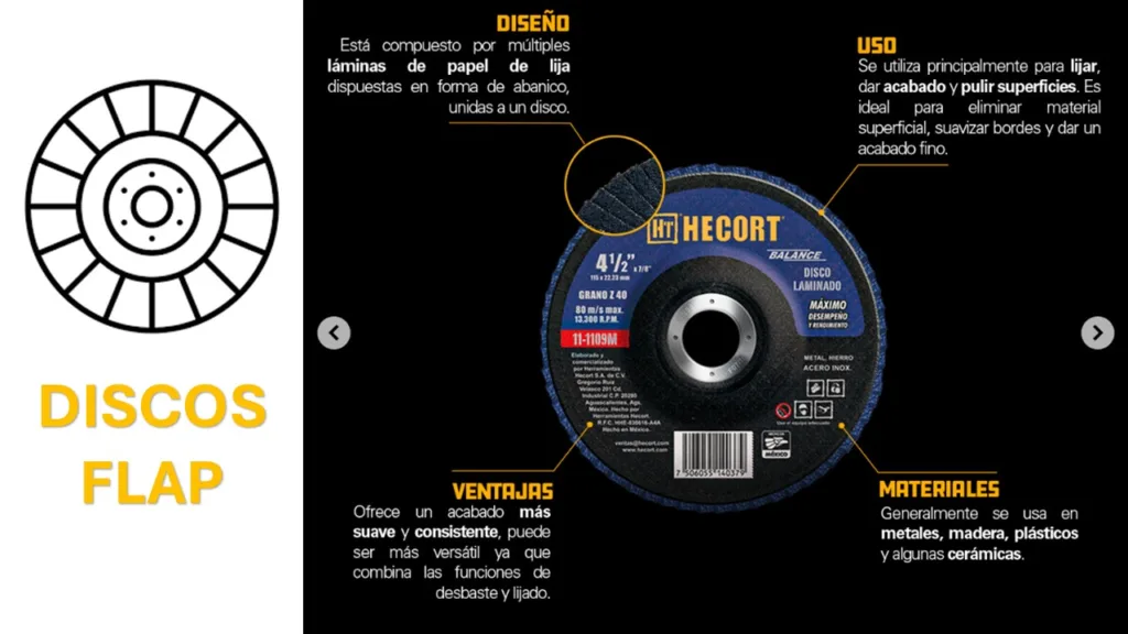 - Si buscas eficiencia + acabado limpio, los discos flap son tu mejor aliado.