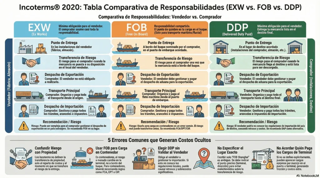 4) EXW vs FOB vs DDP (tabla simple para compras e ingeniería)
